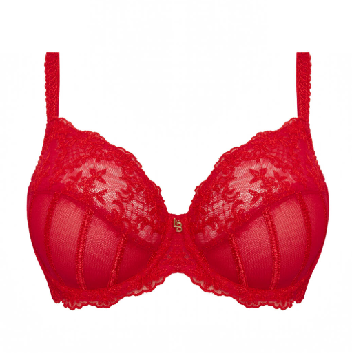 Victoria incarne l’élégance d’une broderie de style victorien, évoquant la délicatesse de la dentelle. Cette ligne réunit les éléments iconiques de l’histoire de la corseterie, avec des imitations de baleines subtilement placées sur les bonnets des soutiens-gorge et sur le devant des culottes. Il s’agit en réalité d’une broderie plate, conçue exclusivement dans les ateliers de la maison Louisa Bracq.